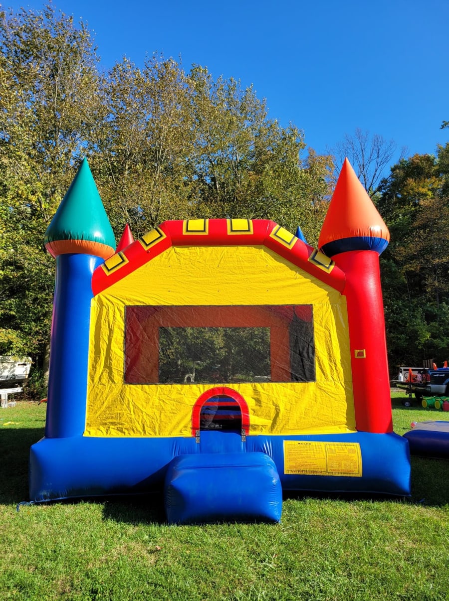 This Multi-Color Castle moon bounce will offer hours of fun for the whole family at any event, party, or celebration! It's great for any and all ages, is sure to be recognized by everyone and can safely accommodate up to 6 kids. It's enclosed with simple colored inflatable walls to blend in and surrounded by mesh to easily see through to keep an eye on your bouncers. This party rental is popular among our rentals, so availability is limited! Water is not permitted on this bounce house.