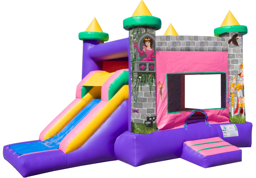 The Princess Combo comes in an attractive pink and purple design that is sure to please every little princess for their birthday party, tea party or celebration. Upon entering the unit, you have a 13' x 13' jumping area that can safely accommodate up to 5 jumpers. There is a rock climbing wall inside the unit that takes you to the top of the slide. The slide goes from the inside of the unit to the outside of the unit. Each side is covered with mesh walls for easy viewing. This bounce house rental is a hit in Berks County and surrounding areas such as Reading, Sinking Spring, West Lawn and Oley. Book yours today, availability is limited!